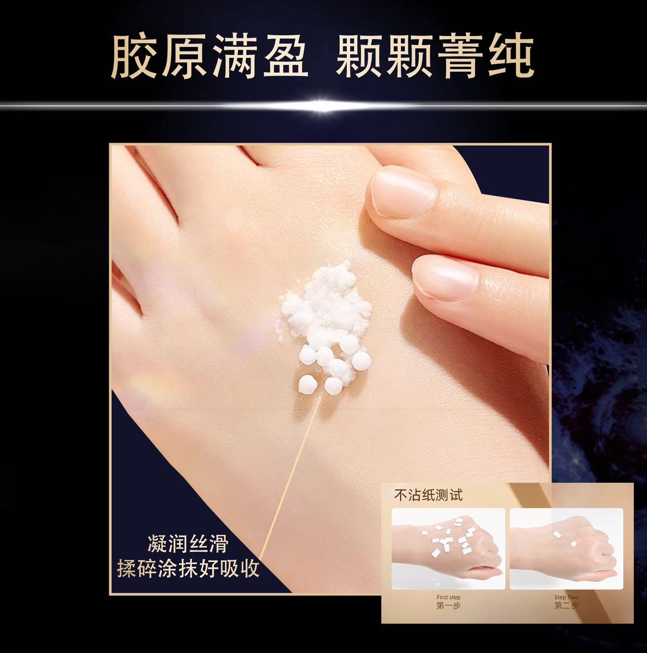 The advanced formula, rich in marine, plant, and bio-synthetic collagen, enhances skin elasticity and protects against environmental damage. Potent hydrating agents lock in moisture, instantly reducing fine lines and keeping skin plump and hydrated.